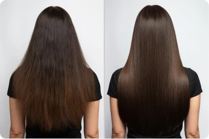 Nosso protocolo preserva o movimento e a leveza, garantindo fios lisos, sedosos e cheios de brilho. Além do resultado visível, você vivencia um cuidado consciente, que respeita a estrutura do cabelo e promove bem-estar em cada etapa.